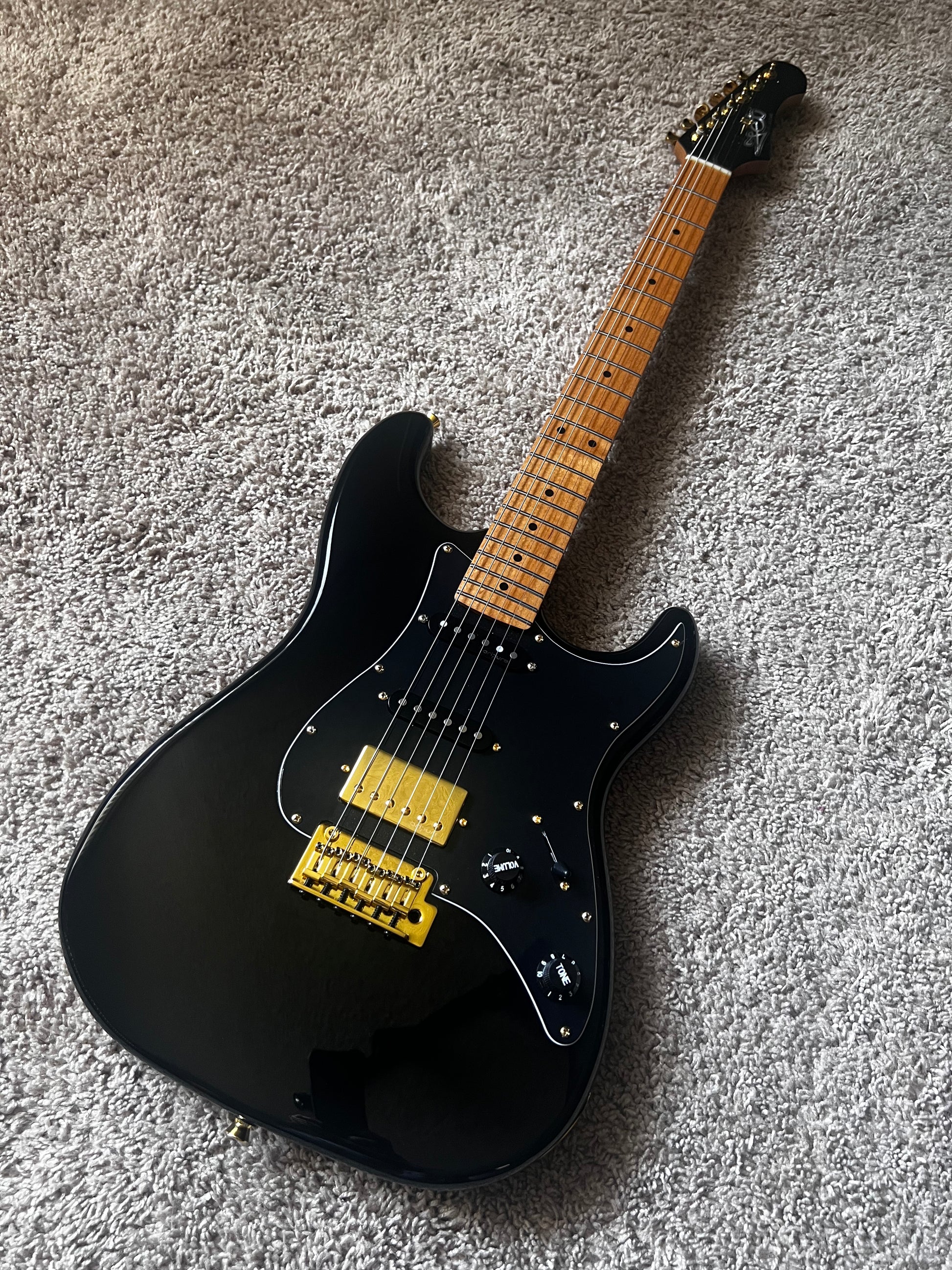 The Jet Guitars JS-400 HSS Roasted Maple is an affordable guitar with a sleek look and exciting tones. It offers sharp and impactful sounds thanks to a humbucker pickup mounted in the bridge, allowing you to stand out in the mix with intense rock solos and crunchy chords. Additionally, it features two single-coil pickups that deliver a smooth and twangy sound, giving the JS-400 a wide range of stunning tones.
