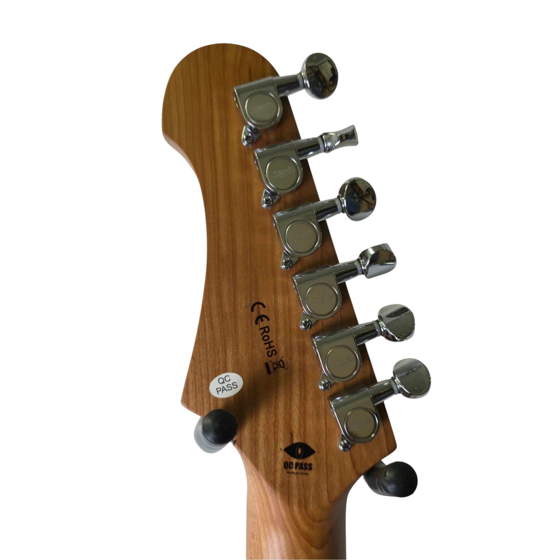 The Jet Guitars JS-400 HSS Roasted Maple is an affordable guitar with a sleek look and exciting tones. It offers sharp and impactful sounds thanks to a humbucker pickup mounted in the bridge, allowing you to stand out in the mix with intense rock solos and crunchy chords. Additionally, it features two single-coil pickups that deliver a smooth and twangy sound, giving the JS-400 a wide range of stunning tones.