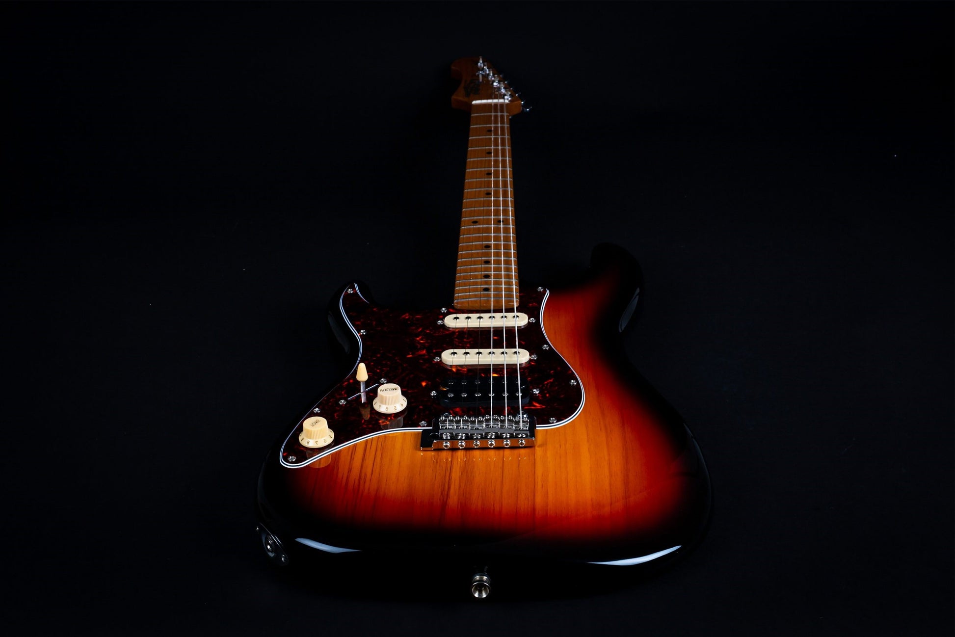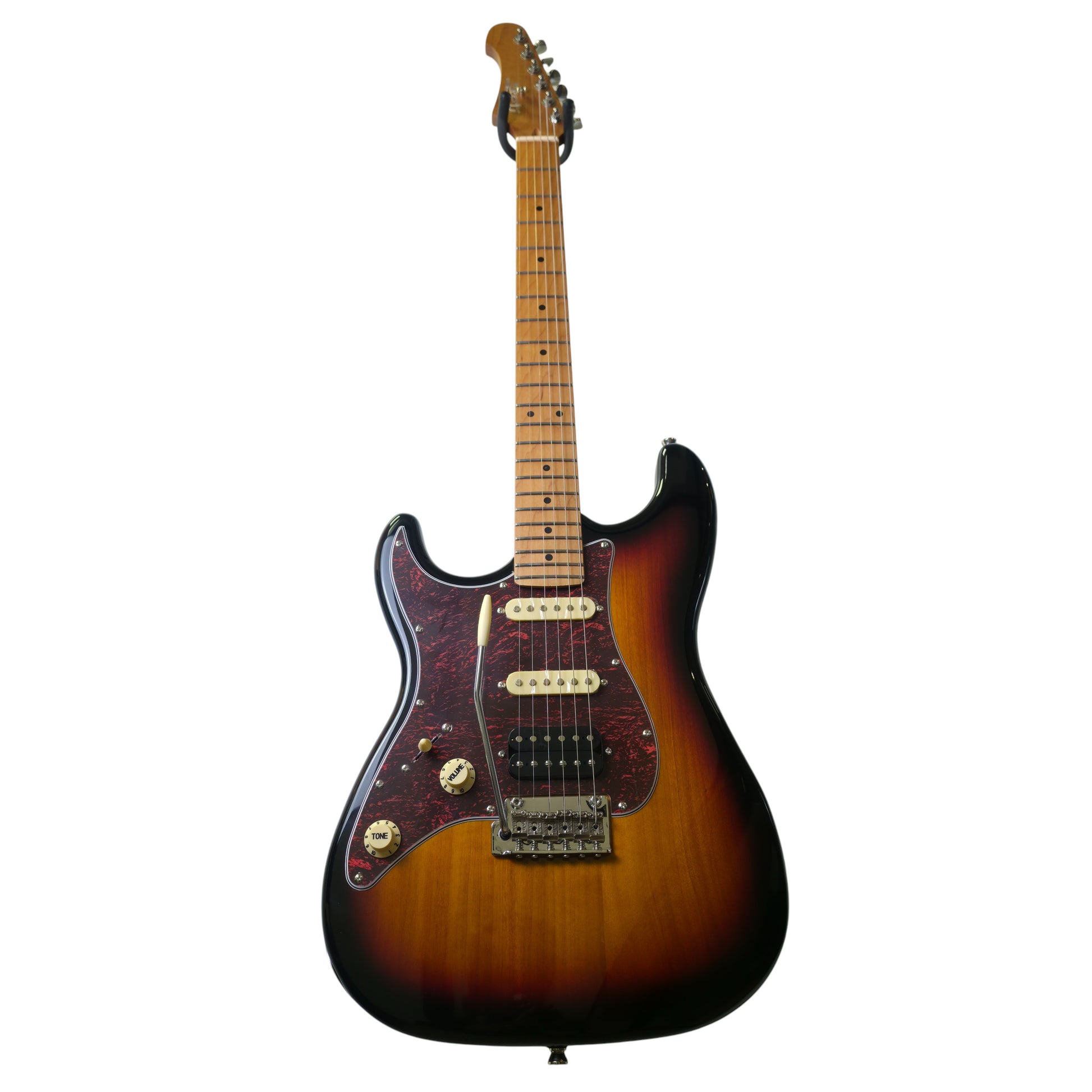 The Jet Guitars JS-400 HSS Roasted Maple is an affordable guitar with a sleek look and exciting tones. It offers sharp and impactful sounds thanks to a humbucker pickup mounted in the bridge, allowing you to stand out in the mix with intense rock solos and crunchy chords. Additionally, it features two single-coil pickups that deliver a smooth and twangy sound, giving the JS-400 a wide range of stunning tones.