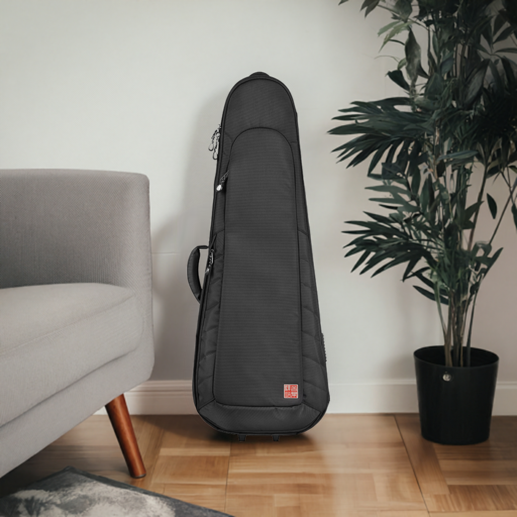 Music Area AA31 Dual Electric Guitar Case features 360 degree reinforced ABS hardshell, 30mm padding with 7 layers, water-repellent and wearproof nylon fabric, neck cradle with velcro lock, removable bumper for protecting the strap button, it also provides a large accessories pocket with different compartments.